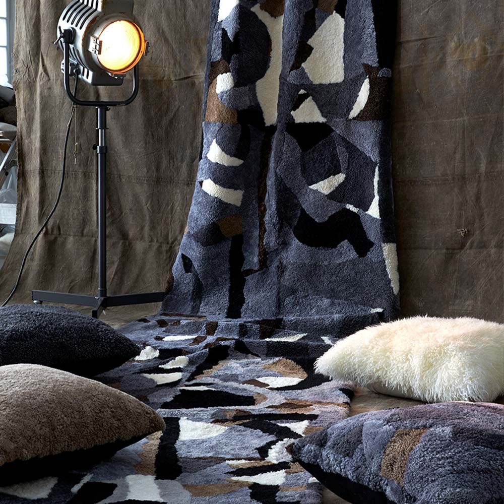 Tailor-made seat cushion, size 70x70cm. The front is made from Skandilock Patchwork, a vibrant and wonderfully varied sheepskin sewn from scraps from our own production. Back side in polyester fabric matching the colour of the sheepskin. Equipped with a hidden zipper on the back. Inner cushion included.