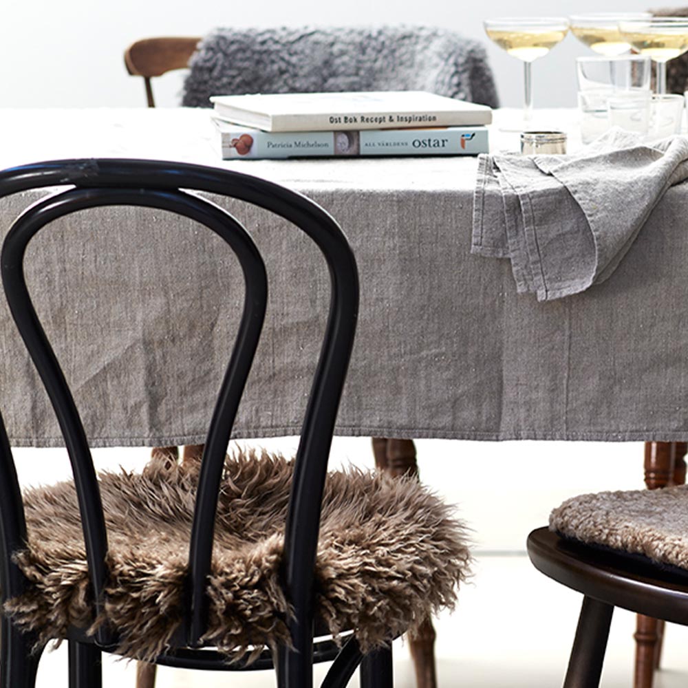 Seat cushion made from long-wooled lambskin from New Zealand. Size Ø38cm with a wool length of +50mm. The wool regulates temperature and is therefore a perfect material to sit on, wonderfully warm in winter and delightfully cooling in summer.